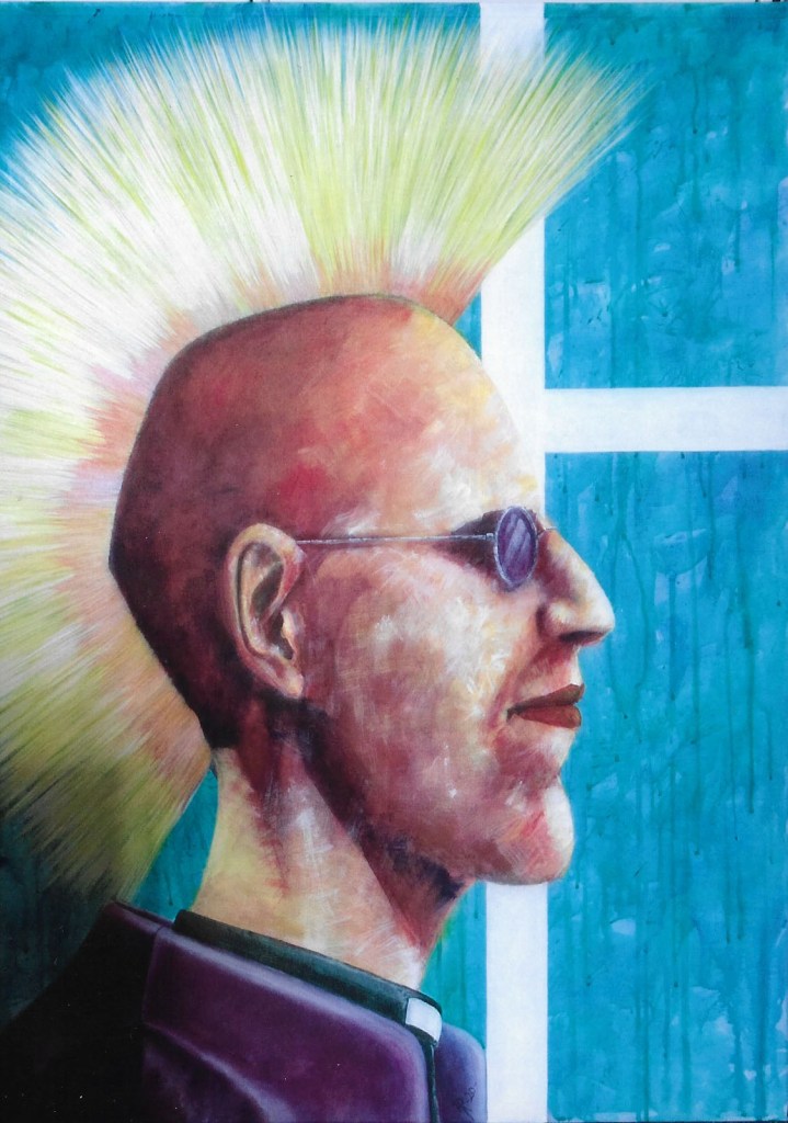Another in my series of punks. Accidentally found the white patch that evolved into a dog collar. Its led me into thinking about who else I could depict as a punk. Watch this space…