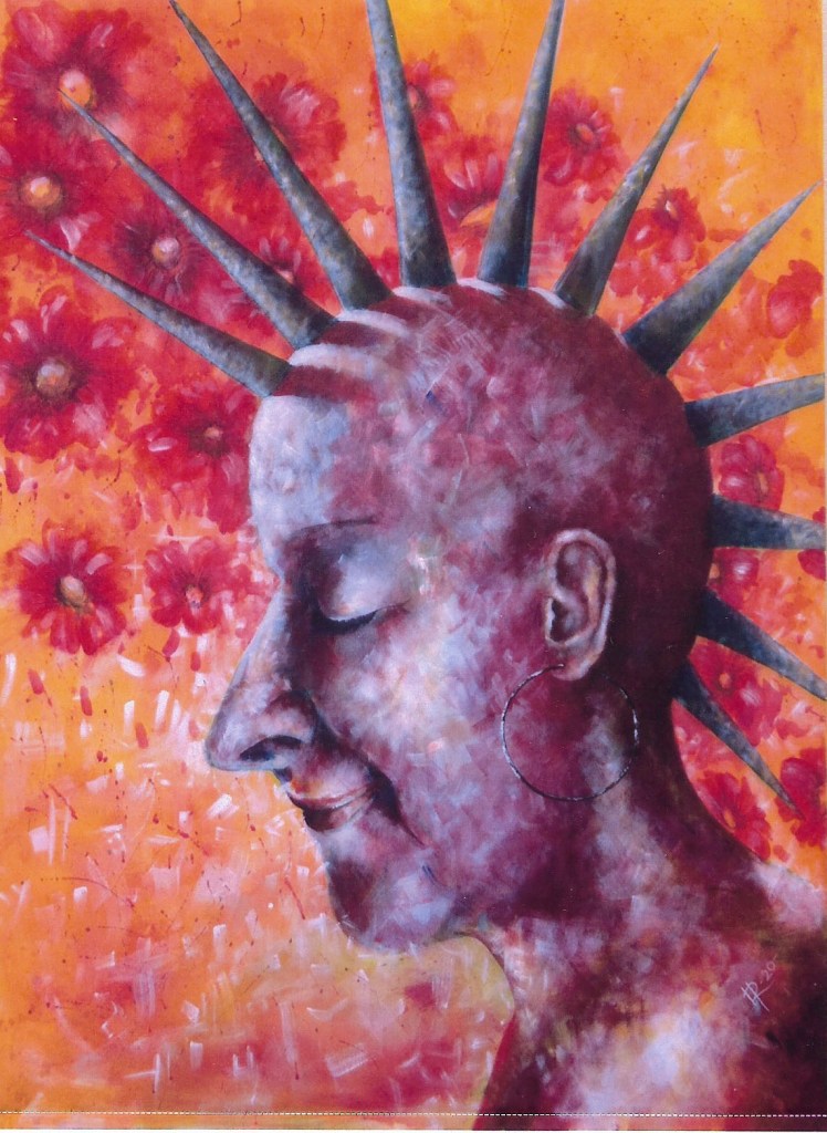 Due to the lack of understanding about why I was such an angry individual I would far too often act out with hostility, aggression and violence towards anybody or anything I perceived as a threat. I might not have known exactly why I behaved in this manner but I could clearly see the evidence of it destroying not only those lives I’d visited my particular brand of chaos upon but also my own. Choosing to do something about it I signed up to a therapeutic environment. It was during my five years of therapy I painted this piece. Like the majority of my work its a reflection of the intensity of the process in which I chose to lay myself vulnerable to intense scrutiny of others by creating very personal artwork. At the time of this painting I’d identified and endured the pain of grieving for a childhood lost to me. By depicting a sycamore seed with a child’s head I was acknowledging a nurtured child is a healthy child. I know my history wasn’t of that ilk but it doesn’t mean that my present and future can’t be full of love and nurture. Like many of my paintings its yet another acknowledgment of what was and a reminder of what can be.